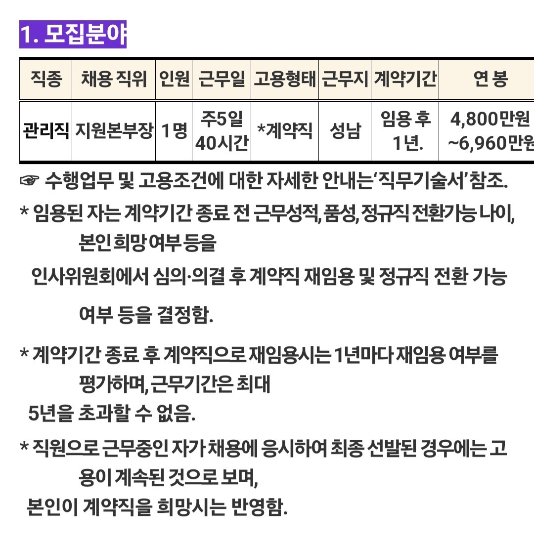 지원본부장이라는 직 자체는 거창해보이나 연봉 및 계약직으로 매년 재계약을 해야하는 고용불안과 직무관련 전문자격증 구비자들이 과연 해당 직책에 지원을 할지는 많은 의문으로 보입니다.