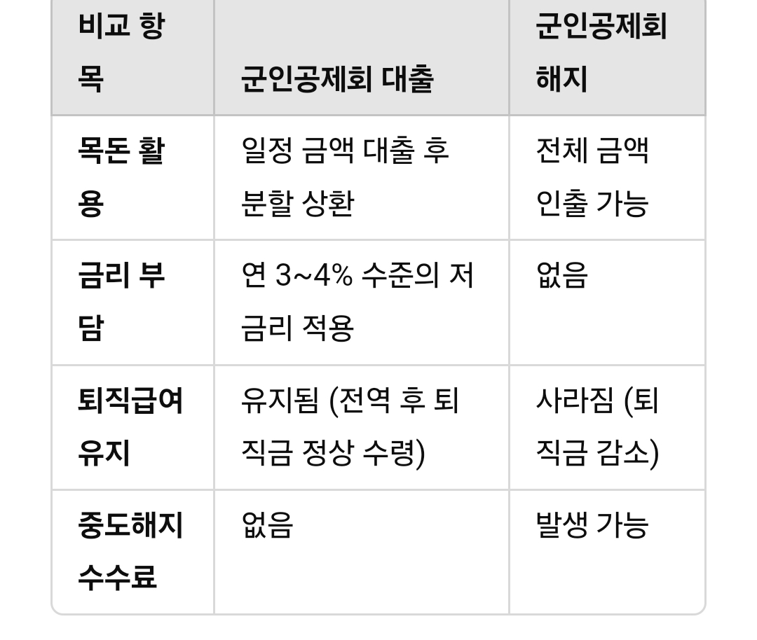 2. 군인공제회 해지 vs 대출 | 어떤 선택이 유리할까?