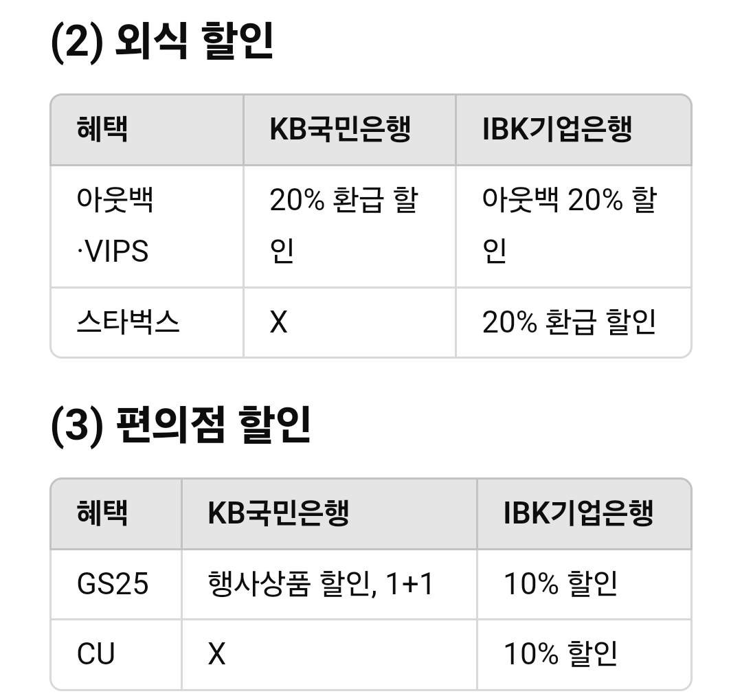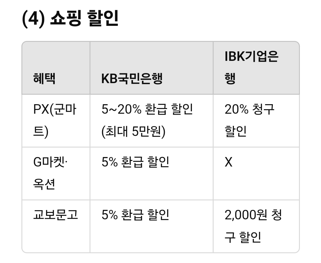 3. 나라사랑카드 혜택 비교 (KB국민 vs IBK기업)
