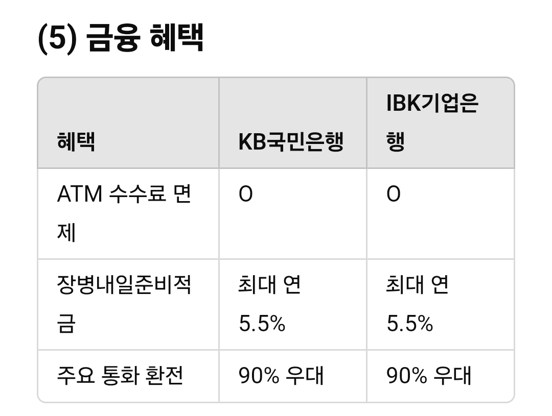 교통, 외식, 편의점, PX 할인, 금융 혜택까지 다양하게 제공되므로, 본인의 라이프스타일에 맞게 KB국민은행 또는 IBK기업은행 중 선택하여 발급받으면 됩니다.