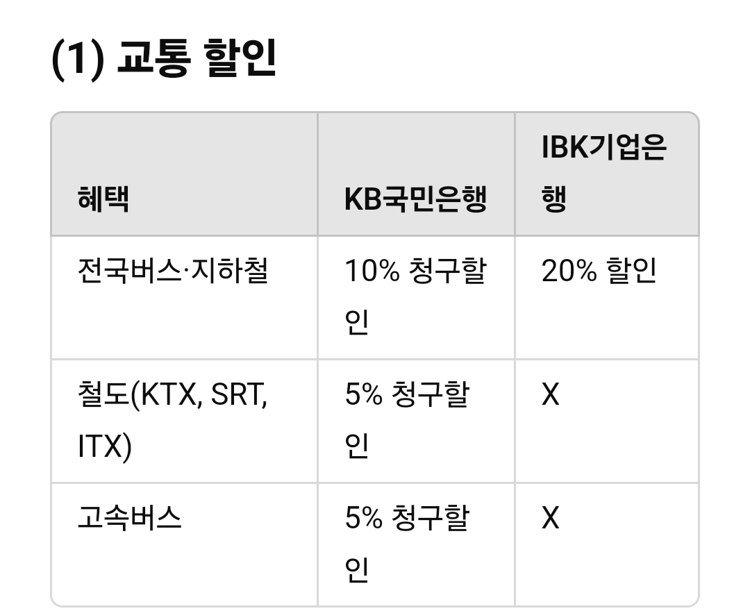 - 기타 할인 혜택: 교통, 외식, 쇼핑, 문화생활 등 다양한 할인 제공
