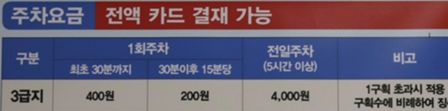 세부적인 주차요금안내입니다.
