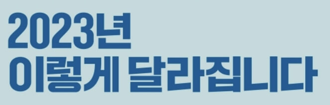 2023년에 달라지는 생활과 밀접한 유용한 정보가 있으니 자신의 상황에 맞춰서 혜택을 받을 수 있는 부분은 기억하셔서 꼭 『아껴야 잘산다』에서 『알아야 잘 산다』 로 변화되는 삶을 사시기 바랍니다.