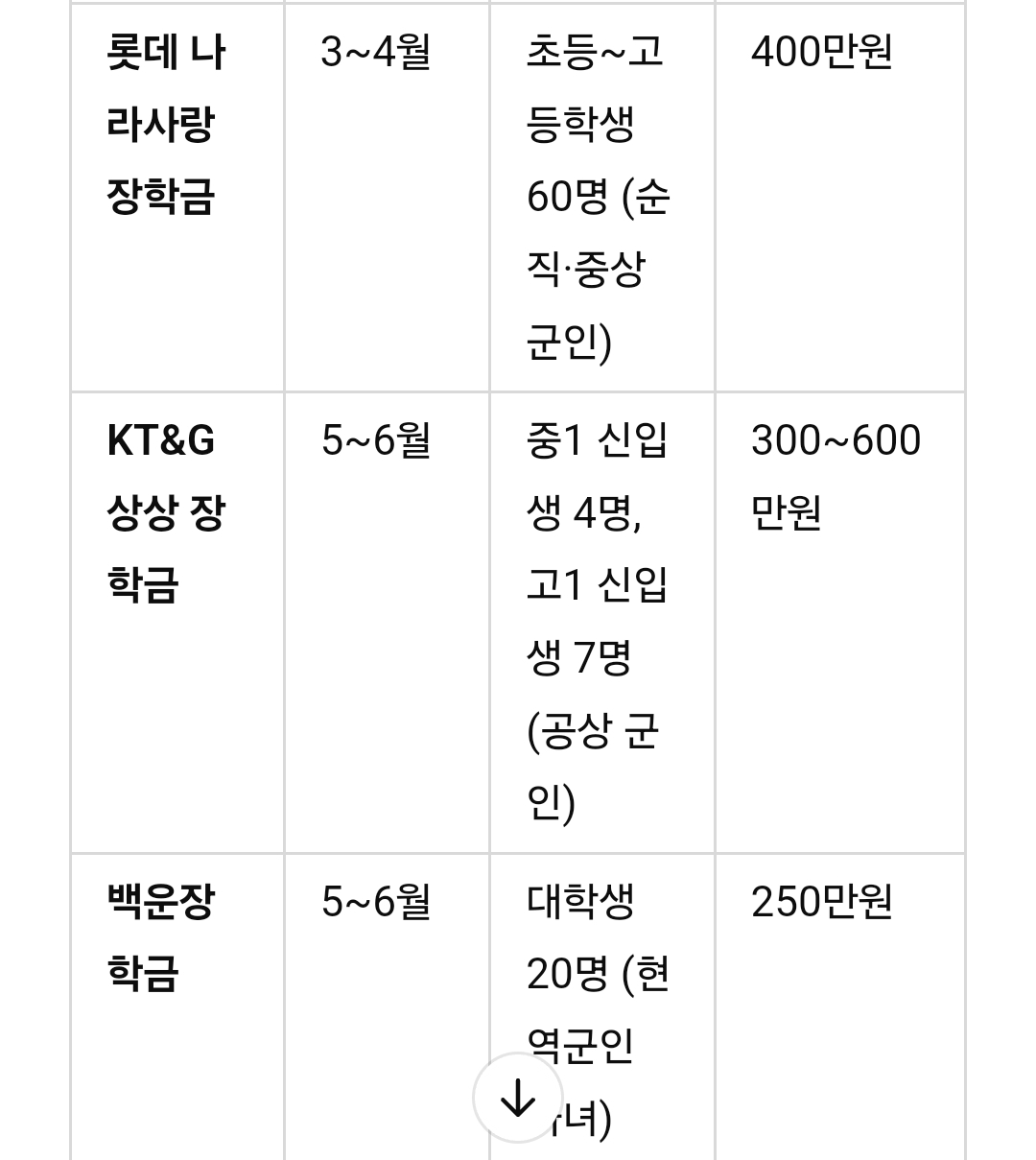 ④ 롯데 나라사랑 장학금 (3~4월 신청)