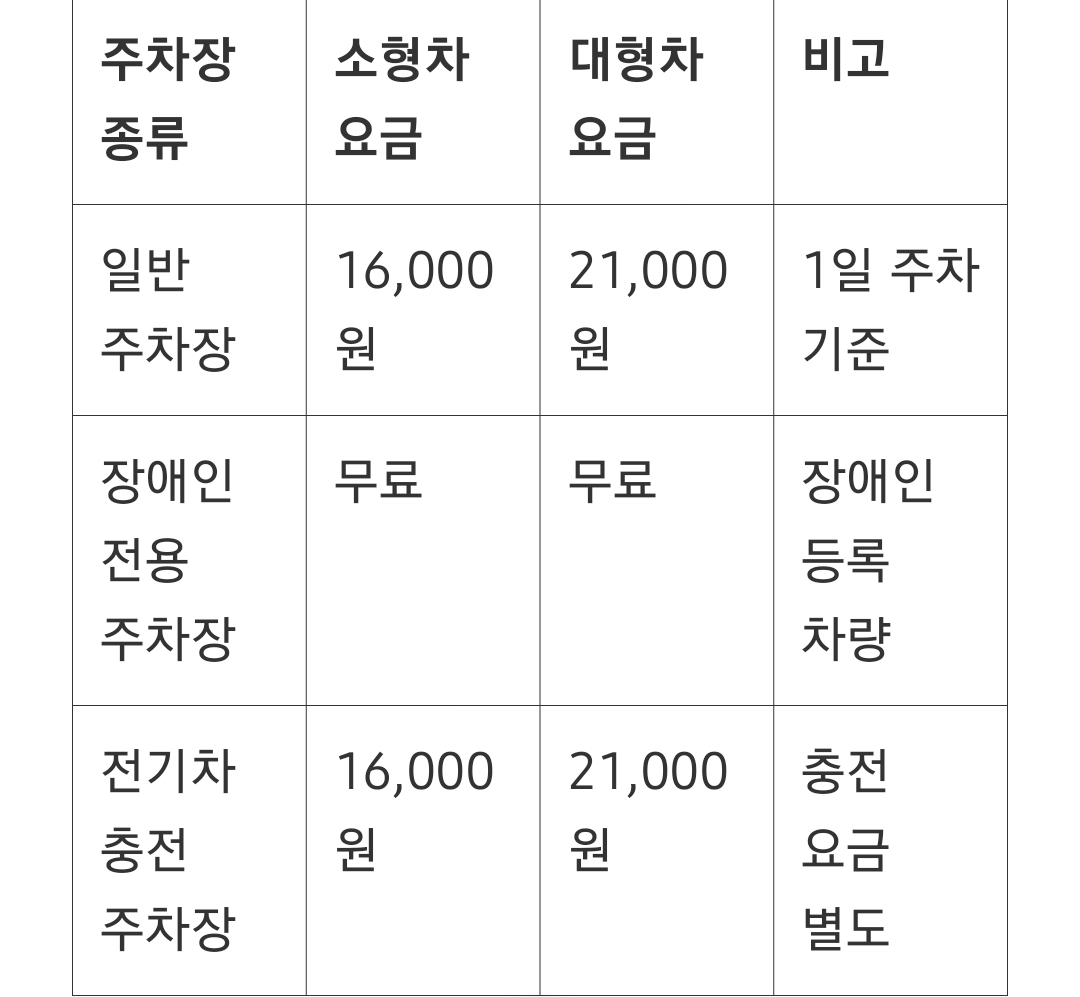 ✔ 일반 주차 16,000원 (소형차 기준)