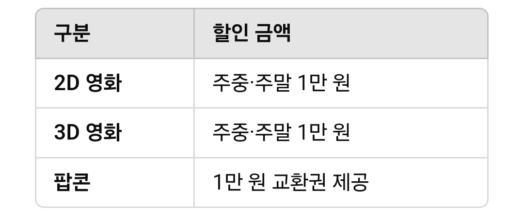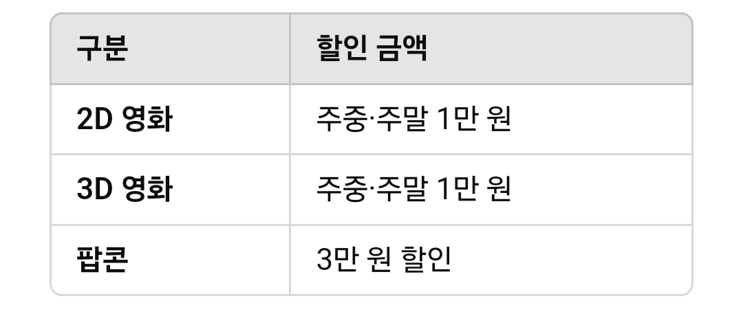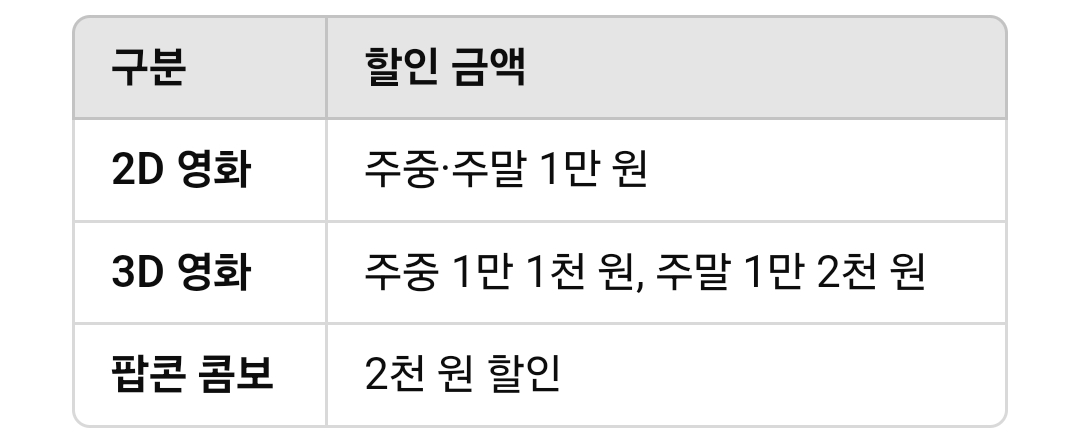 🍿 CGV, 롯데시네마, 메가박스 모두 팝콘 할인 혜택을 제공합니다.