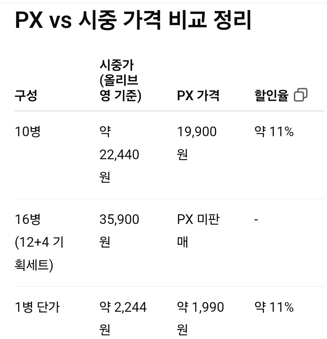 → PX에서 구매 시, 동일한 제품을 약 40% 저렴하게 살 수 있습니다.